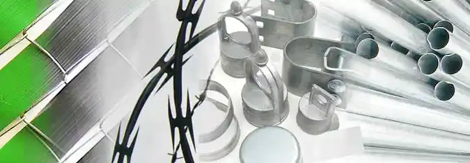 Malla Ciclónica galvanizada y P.V.C., contamos con diferentes alturas 1 mt. 1.25mt. 1.50mt. 2mt 2.50 mt. De 3 a 6 m. Y calibres del 13 al 9 mm. , Tubería de acero galvanizado en diferentes medidas, calibres, diámetros con accesorios para su correcta instalación. Concertina de alta seguridad galvanizada bisturí tipo: industrial, residencial y militar. Cinta Plástica P.V.C. en diferentes colores para seguridad, privacidad y decoración.